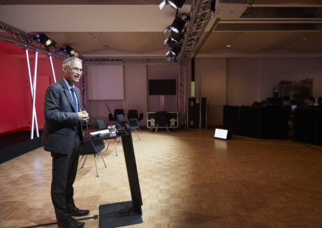 Bei uns können Sie hybride Events, mit begrenzter Teilnehmerzahl und einem den aktuell geltenden Vorschriften angepassten Schutzkonzept, ohne Risiken durchführen. Live-Zuschaltungen, um mit den Zuschauern vor Ort zu interagieren, sind problemlos möglich.